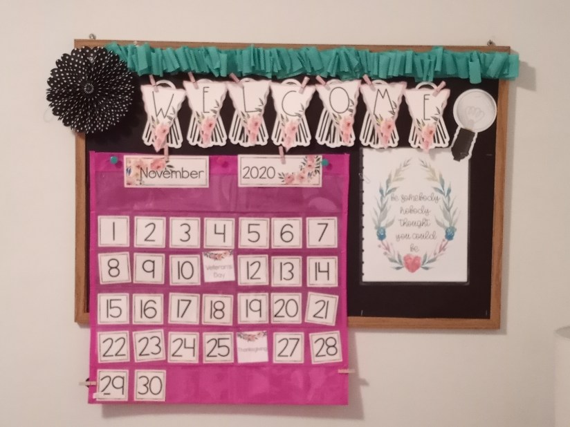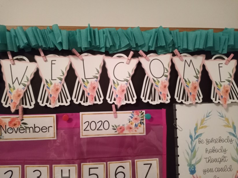 Since the area in which I live went distance teaching/learning, I have to admit that I didn’t create a classroom-type area in my home for when I’m teaching. My hope, of course, has always been that we would get to go back to the classroom relatively soon. Unfortunately, that hasn’t happened. So, receiving these items from Schoolgirl Style gave me the inspiration to start creating a classroom-like atmosphere here at home.