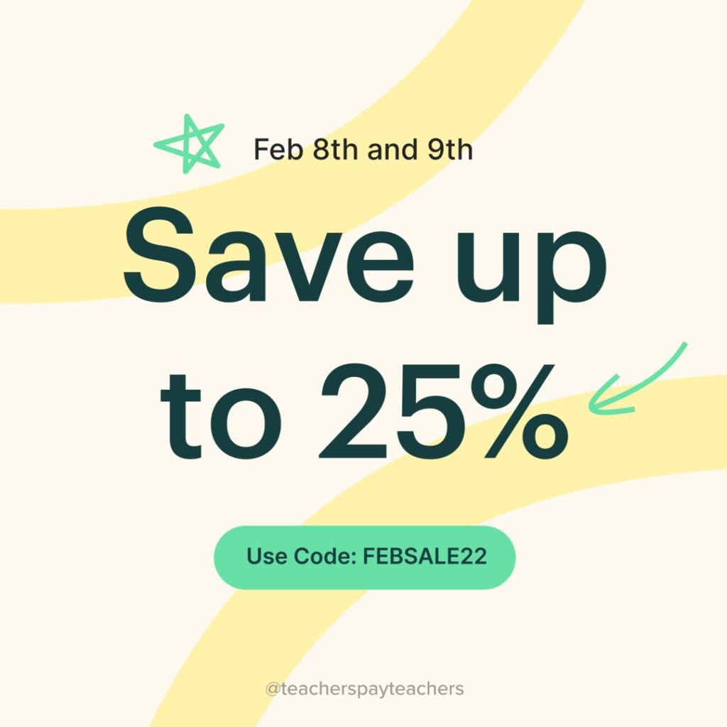It’s that time of year! Teachers Pay Teachers is having its February site-wide sale. If you’ve some items on your wish list, starting tomorrow, February 8, you’ll be able to move those items over to your cart and get them for a discounted price. With spring and testing season coming, there will be plenty of amazing resources available!